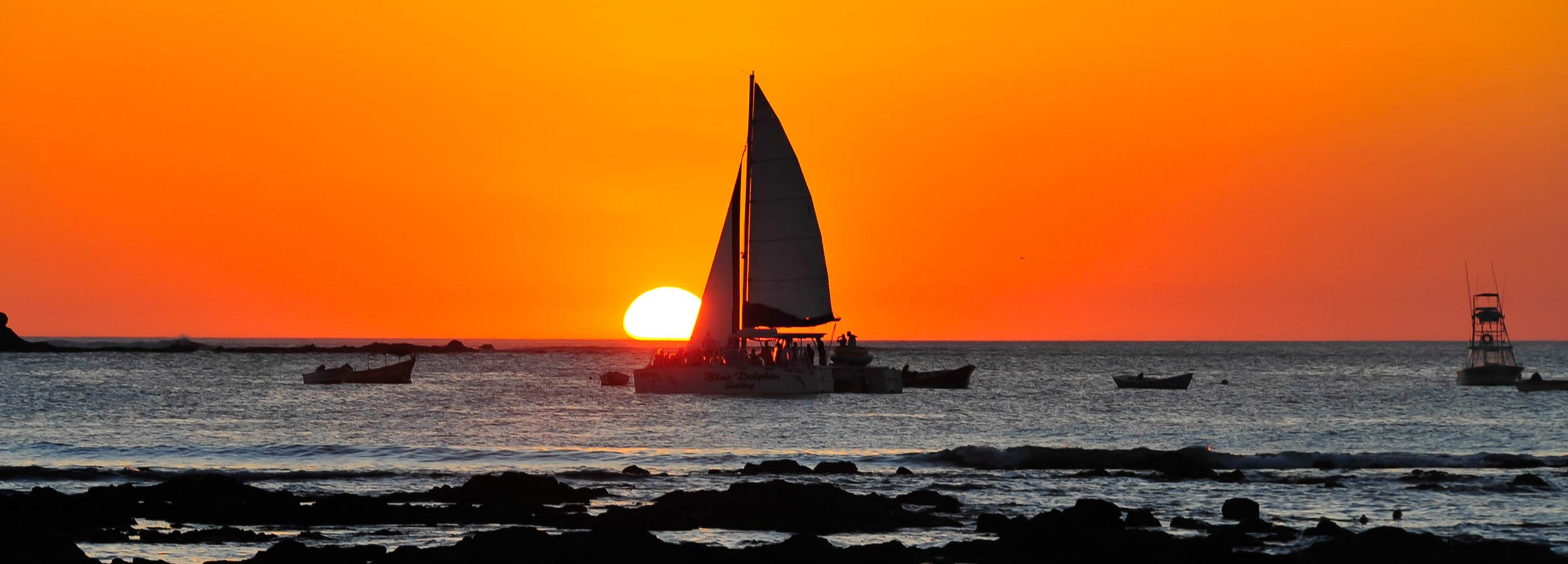 El tour comienza a bordo de uno de nuestros Catamaranes en la Marina de  Flamingo, dándonos un acceso a una de las más hermosas y aisladas playas para realizar snorkeling en Costa Rica. Ahí tendrás la oportunidad de apreciar la vida marina tal como; delfines, ballenas, tortugas, peces y manta rayas. Navegando a lo largo de la línea costera te mostrarán una completamente diferente vista de Costa Rica, también el profesional y amistoso personal hará que tu experiencia sea de lo más refrescante y memorable a bordo del catamarán. Tambien pueden ser parte de las actividades que son aptas para todas las edades, como las de tour de snorkeling guiado, nadar, hacer kayak y pesca. De regreso, a la puesta del sol será el final de una inolvidable y grandiosa experiencia en Costa Rica.